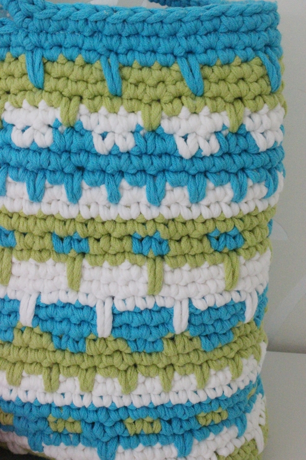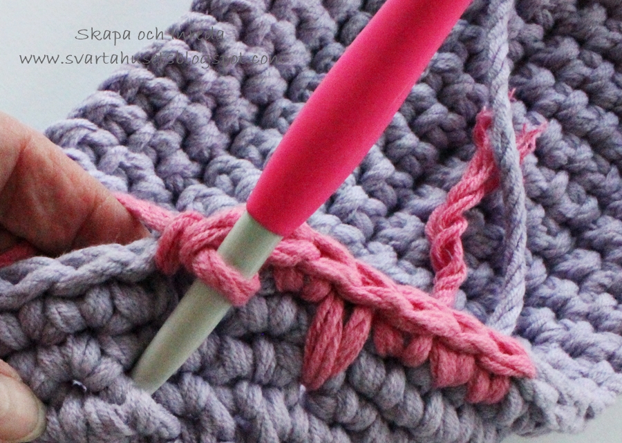 fästa lösa trådar, passa på att virka in dem, man håller trådarna bakom arbetet